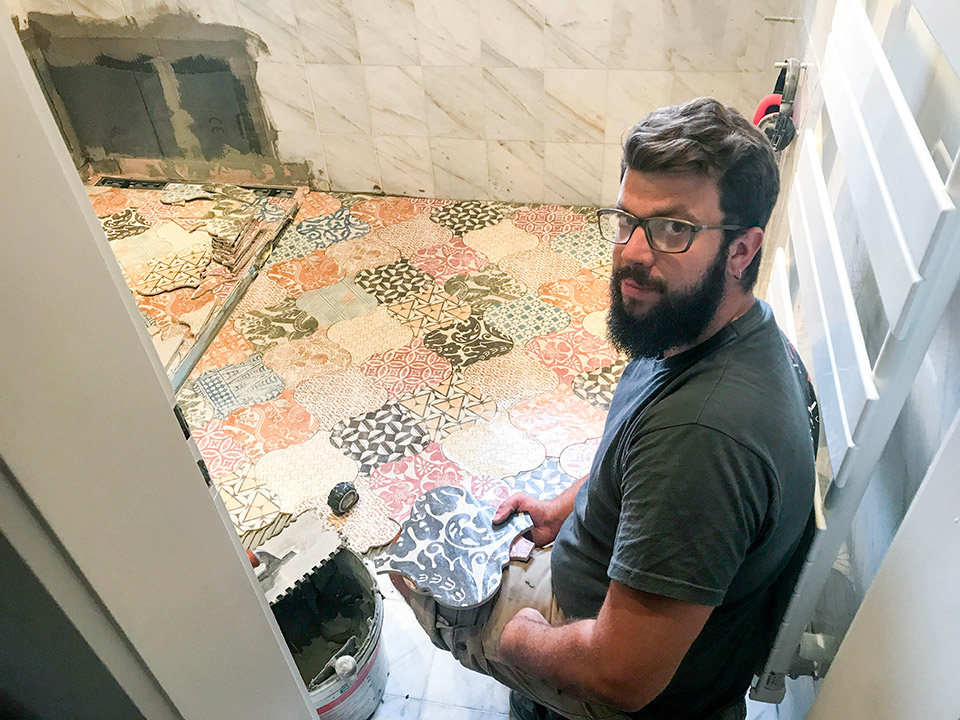 Pose de faïences en écaille de poisson au patchwork aléatoire